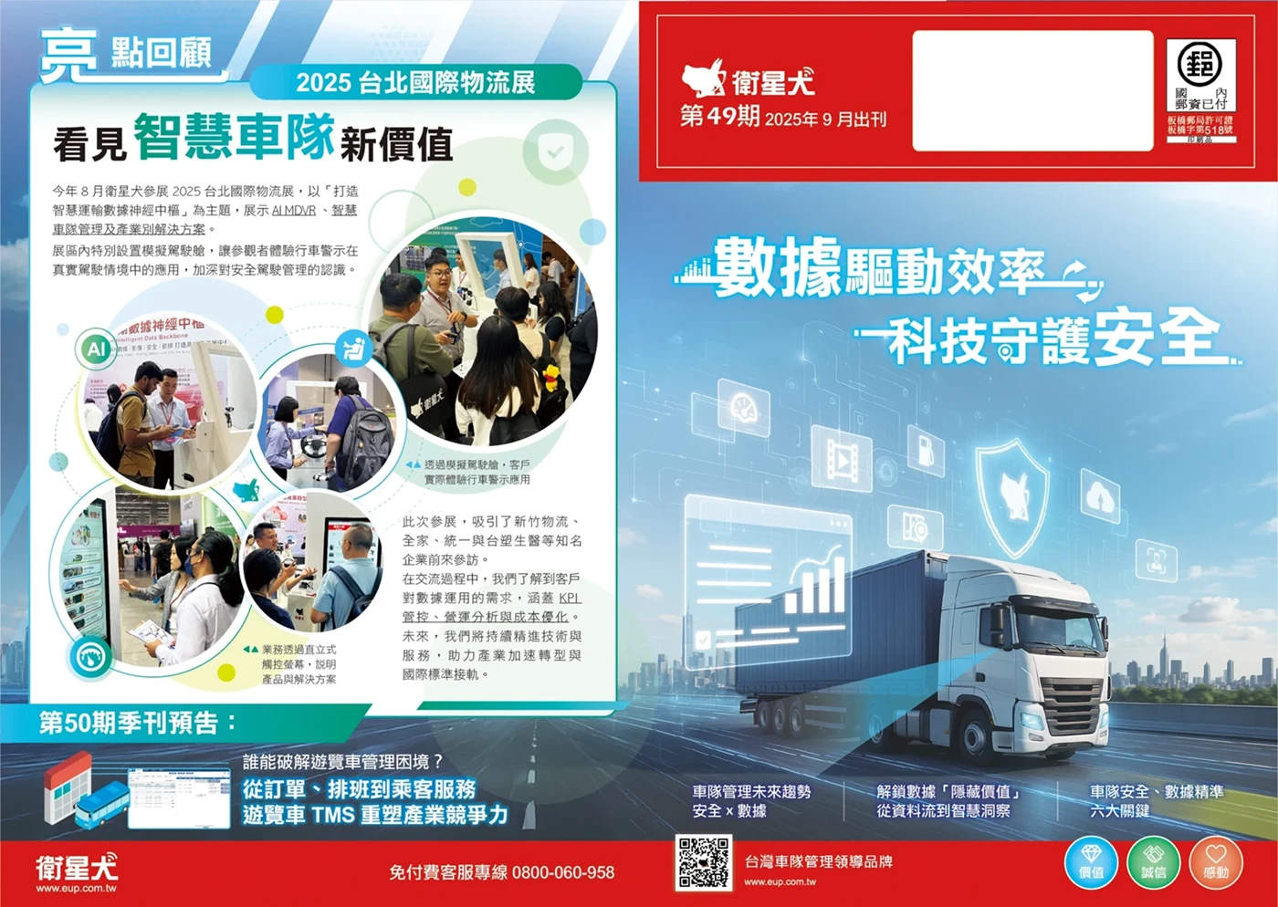 衛星犬期刊 No.49 數據驅動效率 科技守護安全 https://www.eup.com.tw/journal-49 Tue, 07 Oct 2025 02:40:13 +0000 https://www.eup.com.tw/?p=14111 The post 衛星犬期刊 No.49 數據驅動效率 科技守護安全 appeared first on 弋揚科技-衛星犬智慧運輸整體解決方案提供者-「服務快速,安全守護」.